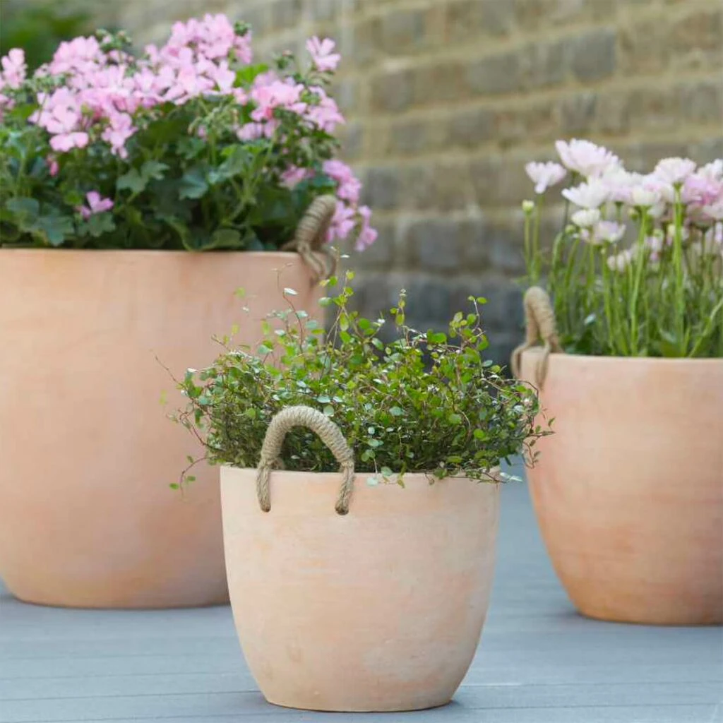3er Set Pflanztöpfe Mit Jutegriff – Terrakotta -Rund – Ajana