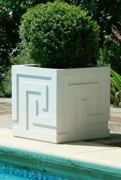 Die Fertigung des Pflanztopfes erfolgt kunsthandwerklich von Steinmetzen und Bildhauern. Als Grundlage wird ein natürlicher Sandstein verwendet, welcher fein gemahlen und mit Zuschlagstoffen sowie Farbpigmenten versehen wird. Das Gemisch wird luftdicht in eine Form gegossen. Hierdurch entsteht ein robustes Pflanzgefäß, welches witterungsbeständig und langlebig ist. Der Sandsteinguss zeichnet sich durch eine hohe Dichte aus, sodass das Material auch für architektonische Bauten, wie Säulen, Kapitelle und Pavillons genutzt werden kann. Nach der Trocknung erhält der Blumentopf die erste Qualitätskontrolle und wird von Bildhauern per Hand weiter detailliert bearbeitet. Bei Fragen und Sonderwünschen steht Ihnen unser Team gern zur Verfügung.
