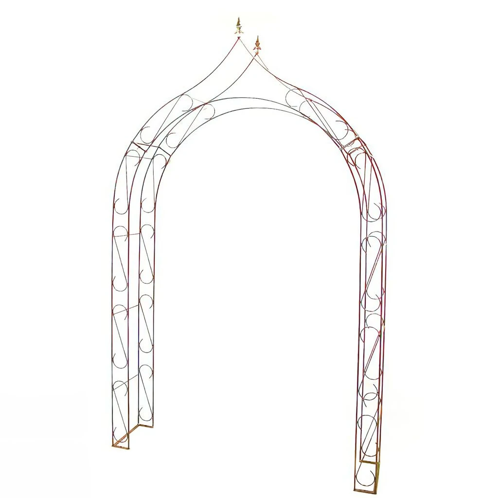 Großer Metall Rosenbogen Mit S-Dekor – Rost – Impedio Rosa