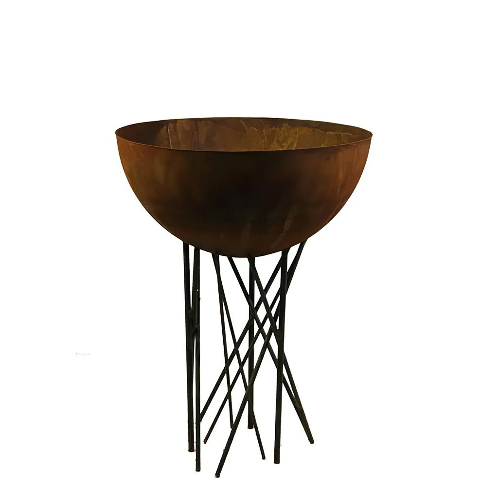 Die Halbkugel auf Stäben wird aus rostigem Metall gefertigt und ist für die dauerhafte Aufstellung im Außenbereich geeignet. Ob als Pflanz- oder Dekoschale – garantiert ein echter Hingucker!