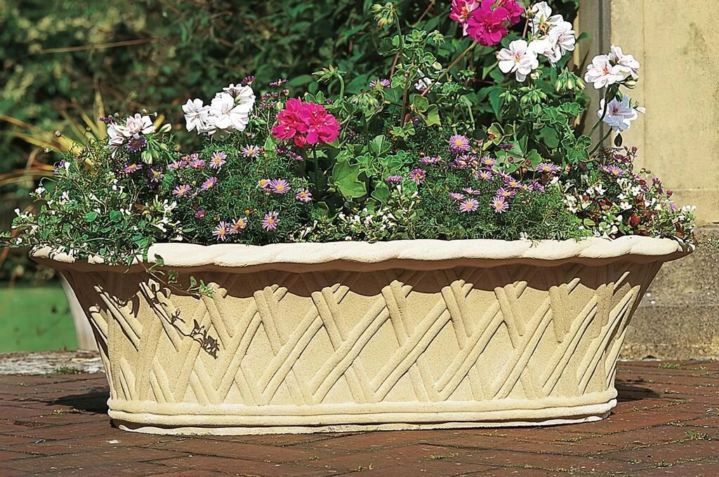 Dieser edle Pflanztrog aus echtem englischem Steinguss bietet zahlreiche Gestaltungsmöglichkeiten und sorgt für ein stilvolles Ambiente im Garten oder auf der Terrasse. Der ovale Blumentopf eignet sich bestens für die Dekoration im Außenbereich und kommt auf Mauern oder Treppen genauso gut zur Geltung wie auf einer Veranda. Das stilvolle Flechtmuster und die edlen Verzierungen geben dem Pflanztopf einen antiken Look. Der historische Pflanztrog ist aus einem winterfesten Steinguss angefertigt und sehr hochwertig. Unser Tipp: Nutzen Sie solch exklusive Blumentröge, um einzelne Bereiche im Garten oder auf dem Grundstück thematisch abzutrennen.