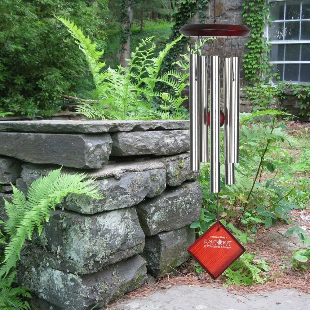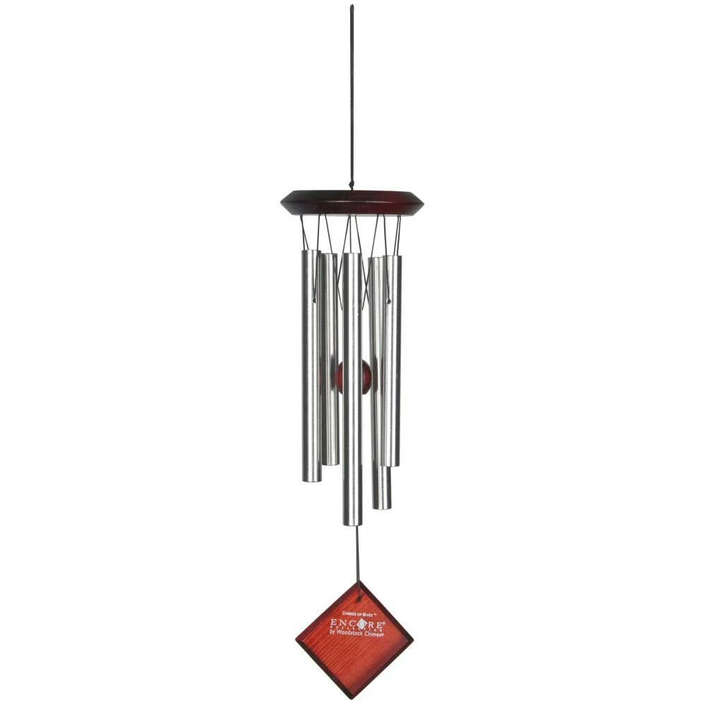 Bei diesem Klangspiel aus Metall – Chimes of Mars – handelt es sich um ein Teil aus der sehr beliebten Encore Kollektion. Alle Windspiele dieser Kollektion nehmen Bezug auf die Planeten unseres Sonnensystems. Die Klangspiele erzeugen einen wunderbaren Klang und sind abgestimmt auf eine Fünftonleiter. Die Töne wirken wie ein zufälliges Muster. Die Serie ist in den Farben Silber, Schwarz, Bronze und Silber mit hell gewischtem Holz erhältlich. Die Röhren sind aus Metall gefertigt und das Eschenholz mit einem Bubinga-Finish versehen. Auch zusammen wirken die Klangspiele großartig und harmonisch.