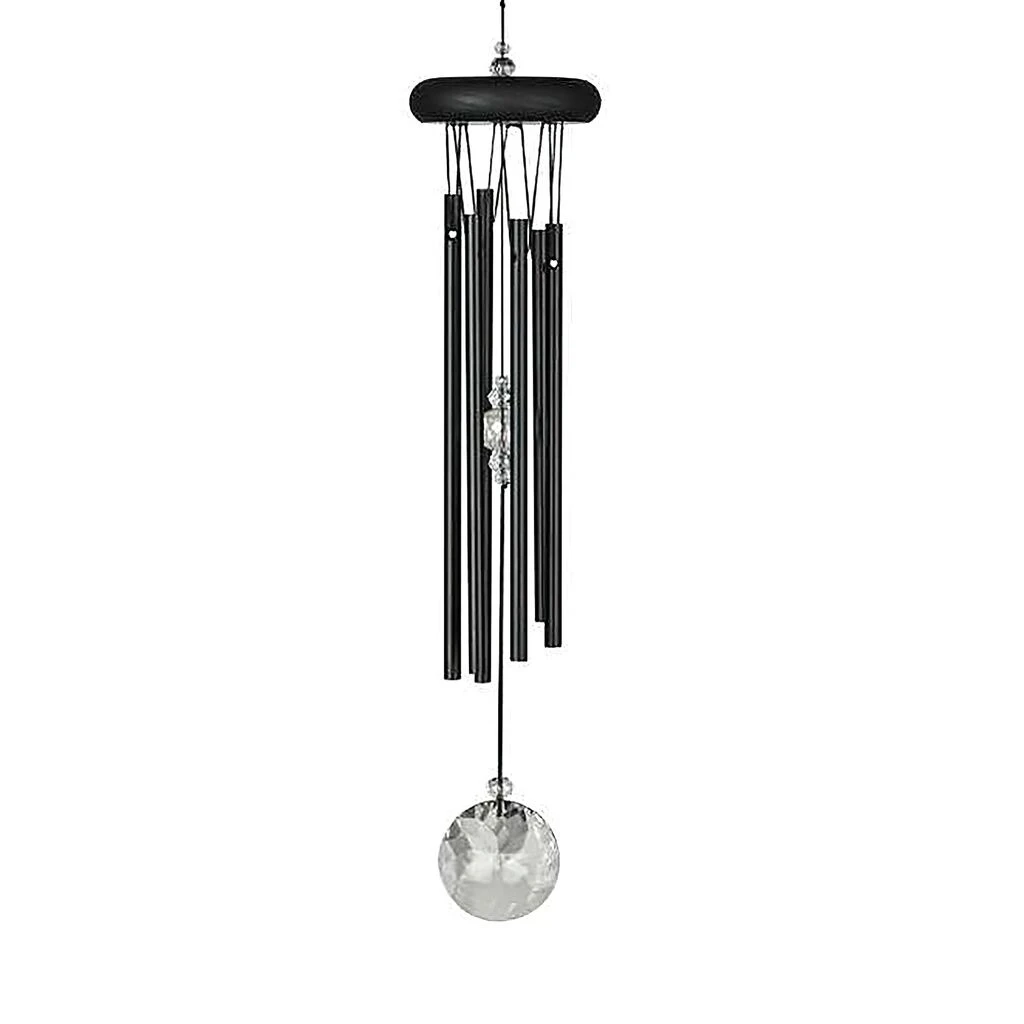 Schwarzes Garten Klangspiel Mit Eschenholz & Kristallglas – Crystal Meditation