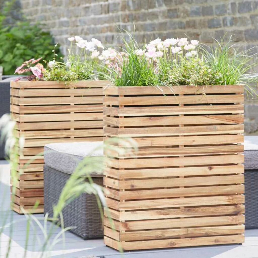 XXL Raumteiler Zum Bepflanzen Aus Akazienholz Mit Einsatz – Eckig – Emil